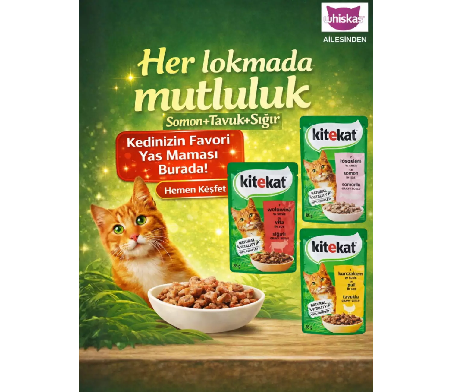 Kitekat Yaş Kedi Maması Yetişkin kedilerin (1-7 yaş) beslenme ihtiyaçlarına özel olarak formüle edilmiş, dengeli ve tam bir beslenme sağlar.