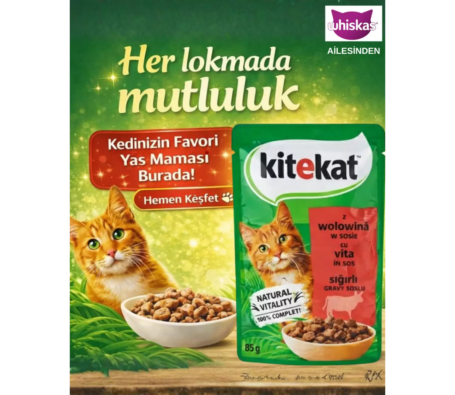 Kitekat Yaş Kedi Maması Yetişkin kedilerin (1-7 yaş) beslenme ihtiyaçlarına özel olarak formüle edilmiş, dengeli ve tam bir beslenme sağlar.