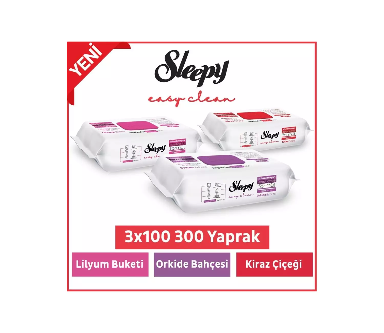 Sleepy Easy Clean Lilyum Orkide Kiraz Çiçeği Yüzey Temizlik Havlusu Mendili 3x100 (300 YAPRAK)