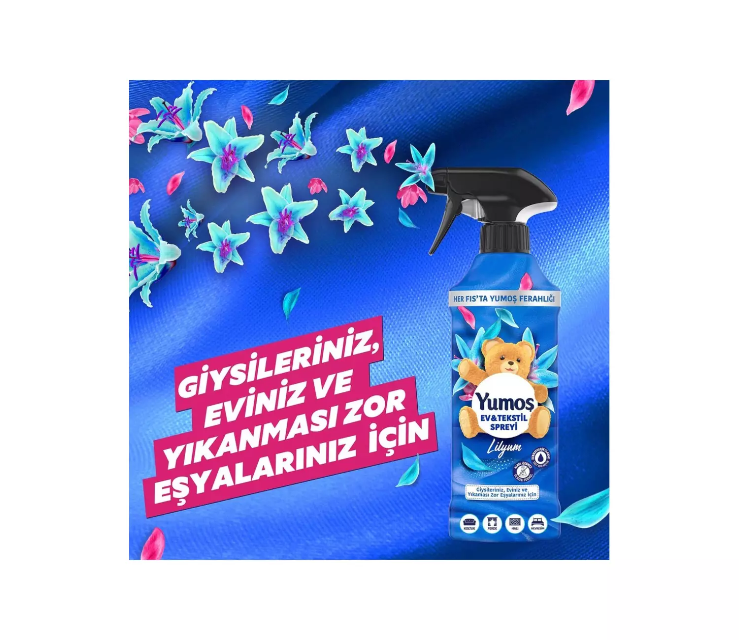Yumoş Ev ve Tekstil Spreyi Lilyum Yıkanması Zor Eşyalar İçin 450 ml