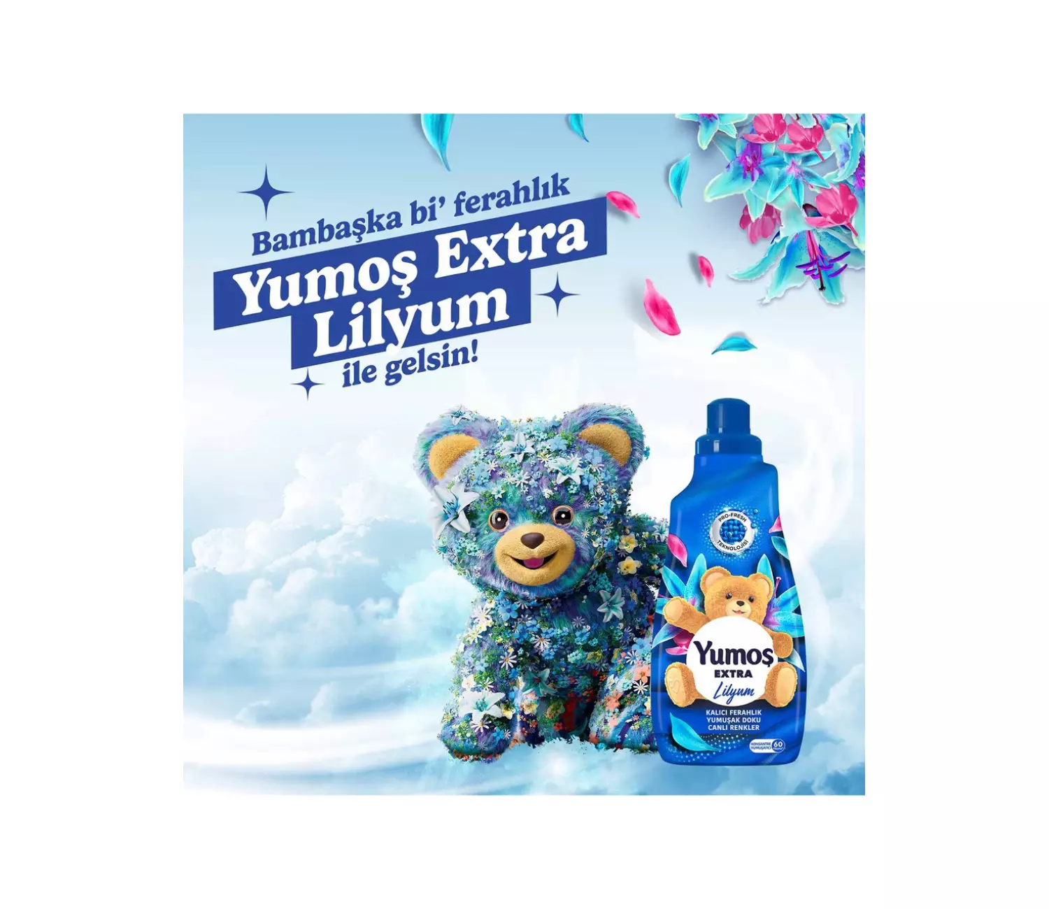 Bambaşka bi’ ferahlık Yumoş Extra Lilyum ile gelsin! Yumoş Extra’nın çok sevilen kokularından biri olan Yumoş Extra Lilyum muhteşem kokusuyla giysilerinize yeni yıkanmış gibi kalıcı ferahlık ve efsane yumuşaklık sağlar. Yumoş Extra’nın uzmanları ile geliştirilen ve içeriğinde bulunan Pro-Fresh Teknolojisi ile giysilerinize yeni yıkanmış gibi kalıcı ferahlık ve efsane yumuşaklık sağlar. Yumoş Extra Lilyum’in eşsiz kokusuyla baharın güzelliğini giysilerinizde hissetmeye hazır olun. Koku uzmanları* ile geliştirilen ve ferahlık kapsülleri içeren parfümü ile giysilerinizde kalıcı koku ve ferahlık sağlar. Kumaş uzmanları* ile geliştirilen doku koruma özelliği ile giysilerinizi oluşturan lifleri sararak, giyme ve yıkama sırasındaki yıpranmayı engeller. Bu sayede efsane yumuşaklık, hızlı kuruma ve kolay ütüleme sağlar. Renk uzmanları* ile geliştirilen özel formülü ile Yumoş Extra Lilyum, giysilerinizin renklerinin daha uzun süre yeni gibi kalmasını sağlar. Çok sevdiğiniz ve renklerini hiç kaybetmek istemediğiniz giysileriniz Yumoş Extra Lilyum ile artık hep sizinle. Yumoş Extra’nın uzmanları ile geliştirilen özel formula ile deterjanın etkisini nötralize ederek cildinize özen gösterir. Kalıcı ferahlık ve efsane yumuşaklığın kokusu Yumoş Extra Lilyum ile giysilerinizde yeni yıkanmış gibi kalıcı ferahlık hep sizinle kalsın! - Kumaş uzmanları ile geliştirilen “doku koruma” özelliği ile giysilerinizi oluşturan lifleri sararak, giyme ve yıkama sırasındaki yıpranmayı engeller. Bu sayede efsane yumuşaklık, hızlı kuruma ve kolay ütüleme sağlar. *Yumoş Extra teknolojisini geliştirenler.